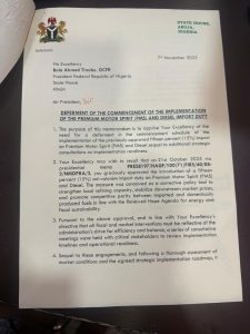The statement further reads: “The NCCSO expresses deep concern over the Federal Government’s decision to defer the commencement of the 15% ad-valorem import duty on Premium Motor Spirit (PMS) and Diesel to the first quarter of 2026, as contained in the memo approved by President Bola Ahmed Tinubu, GCFR, on November 7, 2025.